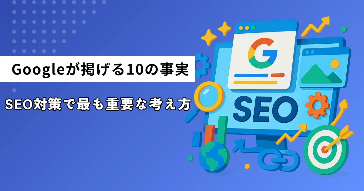 SEOの勉強を始めたばかりの人ほどテクニックに目が行きがちですが、検索で長く勝ち続ける軸はGoogleが公表する「10の事実」にあ…